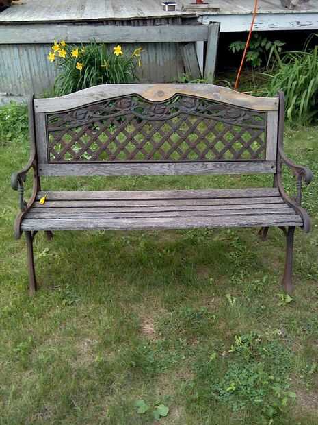 este banco delante de nuestra casa fue definitivamente contenedor digno ante los ojos de la mayoría, pero con un poco de atención se volvió a la vida con un nuevo giro. El metal de la rejilla en el medio y los lados era una fea mezcla de verde y gris