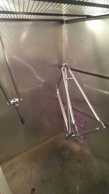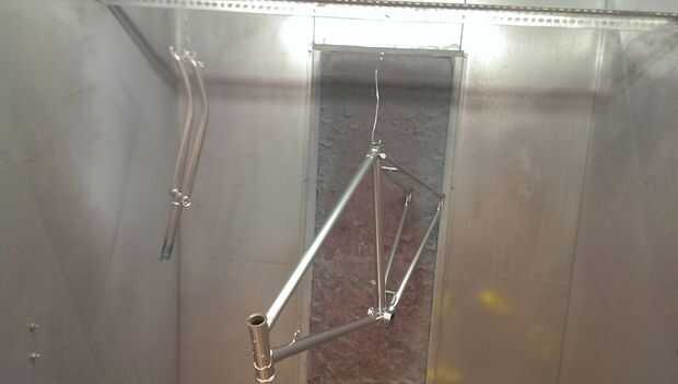 2. Cuelgue el marco y la bifurcación en el horno de curado utilizando un trozo de conductor de alambre.