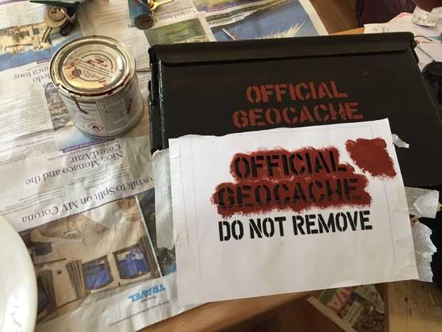 Para facilidad, simplemente imprimí una plantilla preparada, cortar con un cuchillo y un undercoat punteada a través de él en la caja.