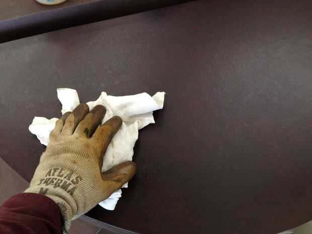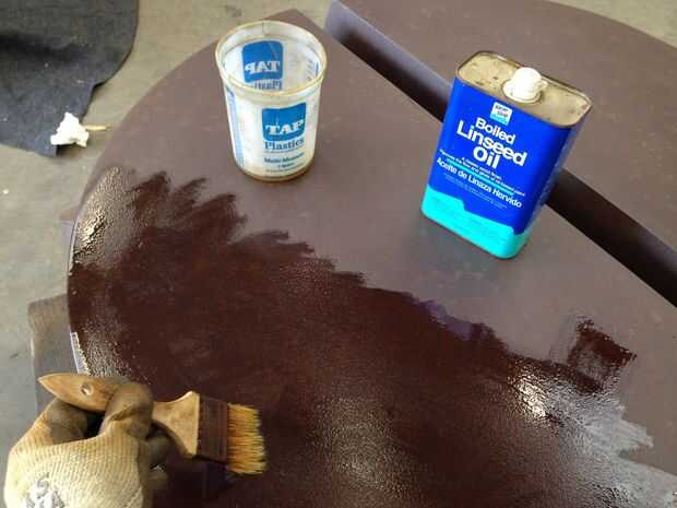 Después de quitar tanto de la roya delapitada posible sin hacer ningún daño más a la pieza, usé una antorcha de pátina para acelerar el proceso de secado (olvidé fotografiar eso paso) y luego déjelo enfriar a temperatura ambiente. Puede dejar que la pieza seque sin aplicación de calor, pero estaba en un poco de prisa. Entonces comencé a aplicar una capa fina de aceite de linaza cocido con un cepillo. Asegúrese de utilizar aceite de linaza cocido y no crudo aceite de linaza. Las cosas crudas no muy seco y te dejará un lío pegajoso. También es importante que el aceite de linaza hervido no es aplicado demasiado grueso. Si es así, le piel sobre y lo adquieres con un trozo arrugado. Mal. Así, después del cepillado el aceite de linaza hervido en la escultura, yo inmediatamente limpiarlo con un trapo limpio y seco. Puesto que el óxido tiene un "diente" a él, sugiero un paño sin pelusas para evitar que la pieza se difusa. El aceite se oscurece el acero, incluso hacia fuera de la superficie y deja una capa protectora cuando está totalmente curado.