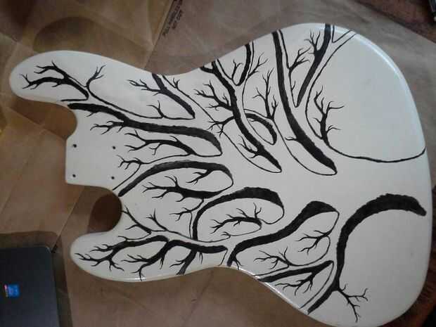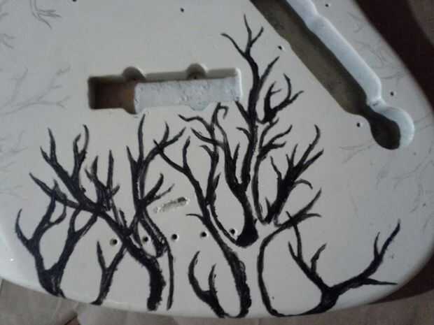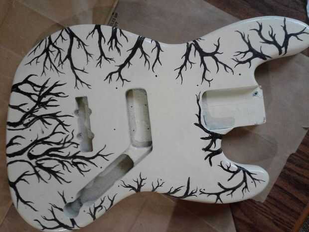 Si no desea un salto de diseño como en el párrafo segundo del próximo paso. Por desgracia, no soy un gran artista de lo contrario habría probé este yo mismo, tuve un amigo hacerlo. Esto es como él lo hizo sin embargo. Comienza por esbozar su diseño con el lápiz todo el instrumento. Pinturas de acrílico se utilizaron para pintar en el diseño y luego tomó unos abrigos que bastante oscuro. Sugiero usando un pedazo de la práctica de la madera para probar sus pinturas, es posible que el resultado no es lo queremos.