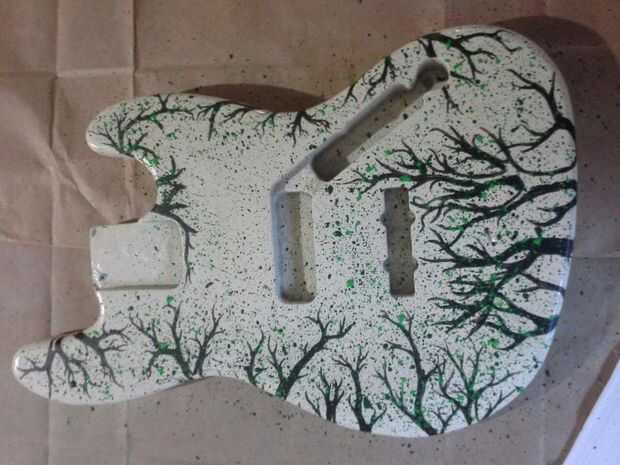 Para proteger el nuevo trabajo de pintura y diseño me puse una capa de pintura clara. Elegí una brillante capa clara para intentar emular el acabado que estaba originalmente en el bajo. Aplicó la misma manera como cuando le pongo en la imprimación y capa base de pintura. Una vez más, ser paciente con esto. Aunque está claro que todavía se pueden ver globos.