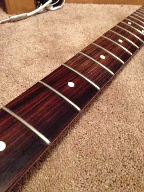 Este es un paso opcional pero creo que realmente ayudó al instrumento estéticamente (fretboards del palo de rosa). Para hacer esto necesitas frotar aceite alcohol y limón. Comenzar poniendo alcohol en una toalla de papel y pasar individualmente cada traste hasta que la toalla de papel no es realmente sucia al intentar limpiarlo. Después de poner poco de aceite de limón en el diapasón y extenderlo hacia fuera. Luego frotar con toallas de papel hasta que se seque. Si no entiendes todo apagado tu diapasón puede terminar siendo sensación aceitosa al jugar.