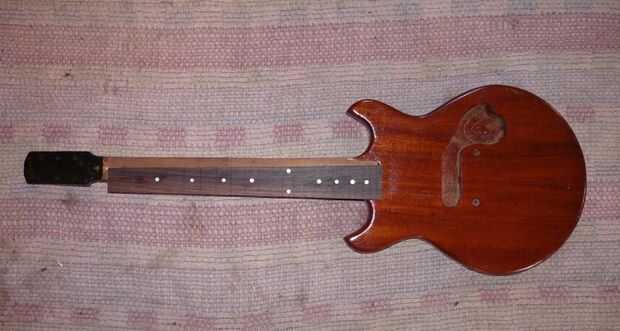 tengo el cuerpo y cuello y la cola, que era... el resto me di cuenta de las partes que tenía de un tirados Les Paul Copy... Fue mucho trabajo bajar ese acabado antiguo, pero creo que valió la pena al final... total me costo en $... a menos de 30$
