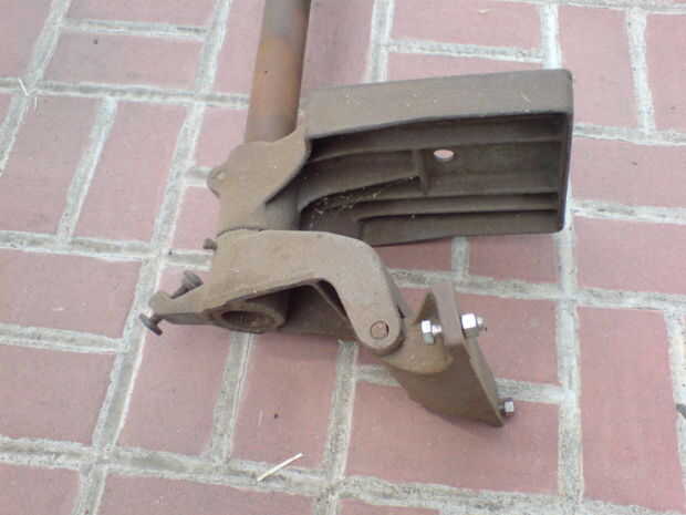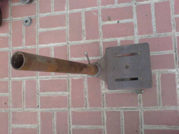 A partir de la base le puede ver en las fotos que es inusual. La persona que lo compré de dijo que iba a fijarse en una sierra de mesa y esa base atornillada al lado de la mesa, y la cinta corrió desde el motor de la sierra, a las dos poleas en la parte posterior del taladro y después dio vuelta a la polea en el eje. La base es abatible en la parte inferior con dos orificios para los tornillos que una vez unido a la sierra. Pensé que podía trabajar con esto en algún arreglo alternativo, e incluso entretuvo la idea de utilizar la bisagra para permitir que la prensa a "deponer" y actuar como un torno. Descarté ese plan bastante pronto, puedo volver atrás y revisar esa idea en una fecha posterior.