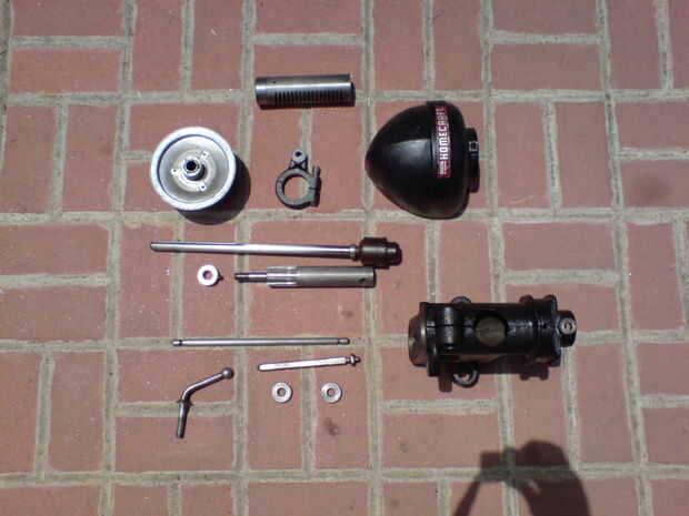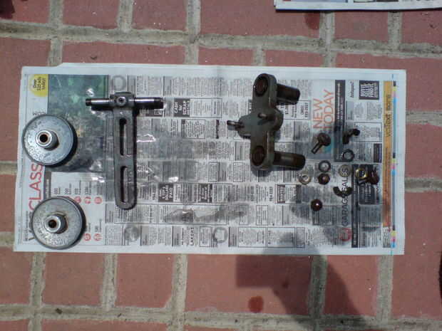 En ese momento descubrí que las poleas en la parte posterior de la prensa eran malas. No tienen rodamientos, son solo mangas de latón sobre una varilla roscada inoxidable. Que parecía habían funcionados seco, no gire libremente y se sentía muy valiente. No creo podrían salvarse, y que no iban a ser necesarios porque el motor iba a montar en su lugar.