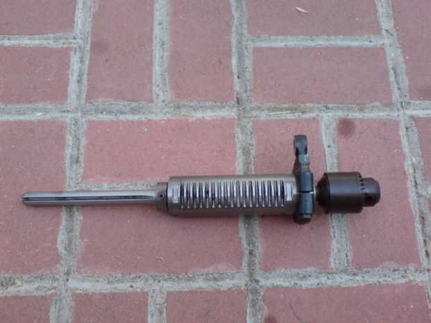 Siguiente la pluma se desliza, con el cojinete hacia el mandril. Una vez que la vaina es completamente hacia abajo coloque el anillo inferior de parada en él, pero sólo apriete los dedos. Debe quedar justo en la base de la vaina.
