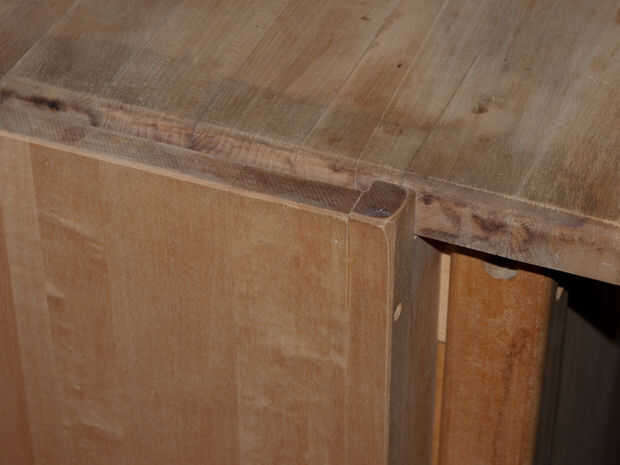 un amigo mio se mudó de su apartamento y me dejó su muebles de cocina, incluyendo un carro de cocina con una superficie de trabajo grande agradable. Por desgracia sus compañeras habían estado usando para el soporte de una mini nevera y no habían limpiado en pocos años. Así que con un poco de trabajo y herramientas de piezas baratas había restaurado el carro en un espacio de trabajo usable. El esfuerzo total fue un fin de semana de trabajo y alrededor de $30.