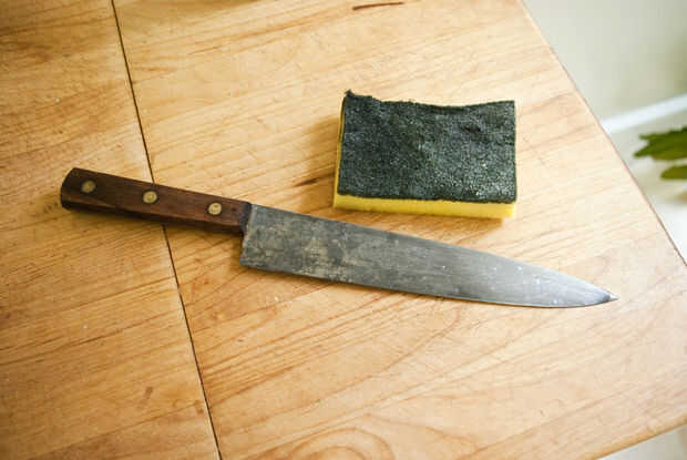 Esperar unas horas y deje disolver moho. Frote el cuchillo hacia abajo con una esponja áspera o lana de acero fina y seguir tomando hasta que el moho haya desaparecido.