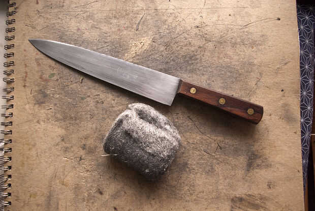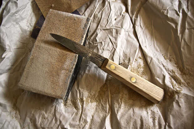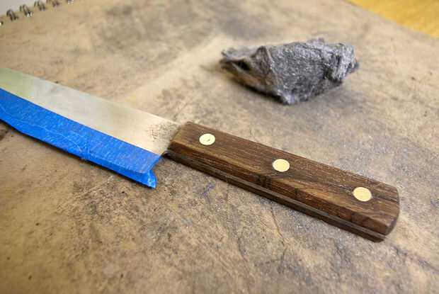 Siempre dejo el afilado paso por último, porque incluso con la cinta en el borde, es posible cortar o apuñalar a sí mismo al acabado de las asas.