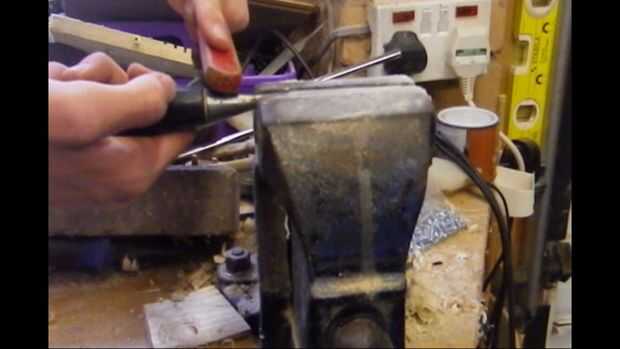Estaba ayudando a mi abuelo moverse y como parte de ayuda llegué a heredar algunos artículos. Uno de ellos resultó para ser un cincel de zócalo poco agradable. Faltaba la manija y estaba bastante oxidado, pero en general fue buena forma, sólo óxido d