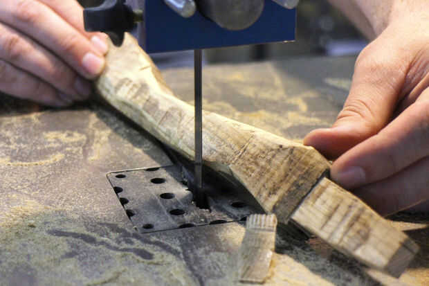 En la Sierra la forma fue refinada más, cuidado de no quitar demasiado material como la forma final se afinará a mano con la escofina.