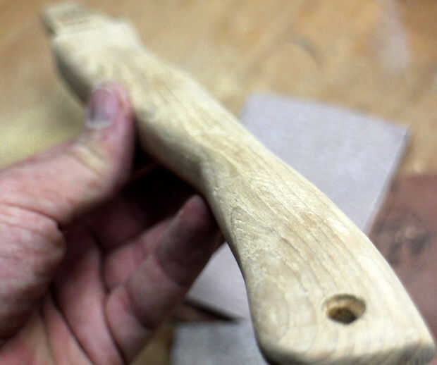 A partir de papel de lija de grano 100, luego trabajar hasta 220 y 320, lija el mango completamente lisa y libre de cualquier marcas de la escofina.