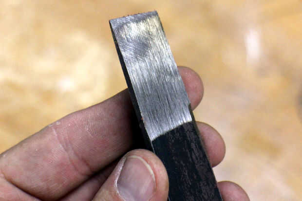 Después de la cuña ha sido afilada la cabeza puede ser puesta sobre el ojal de la palanca y la cuña puede ser insertada.