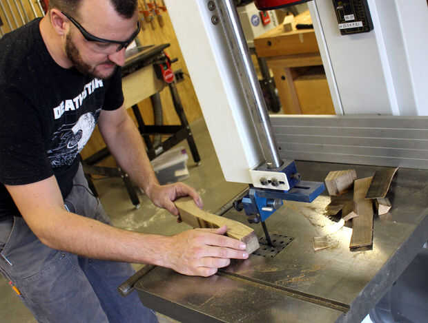 Con el diseño dibujado en la madera fui a la sierra y cortar la forma áspera.