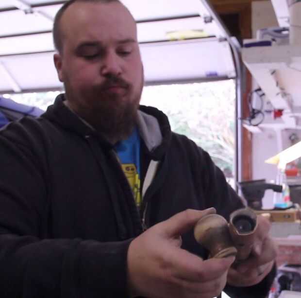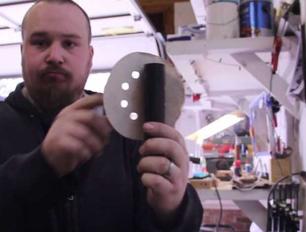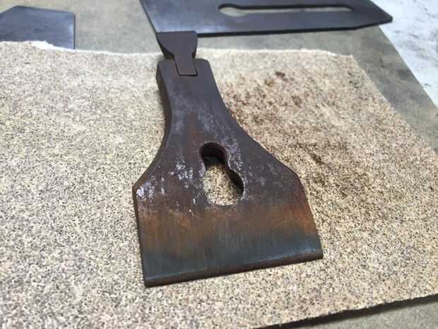 La tapa de la palanca, hierro plano y tapa de hierro tiene un tratamiento lijado similar. Usé algunos objetos redondos para actuar como formas de mi papel de lija y mímico las curvas en la tapa de la palanca y triturador de aserrin (y las piezas de madera).
