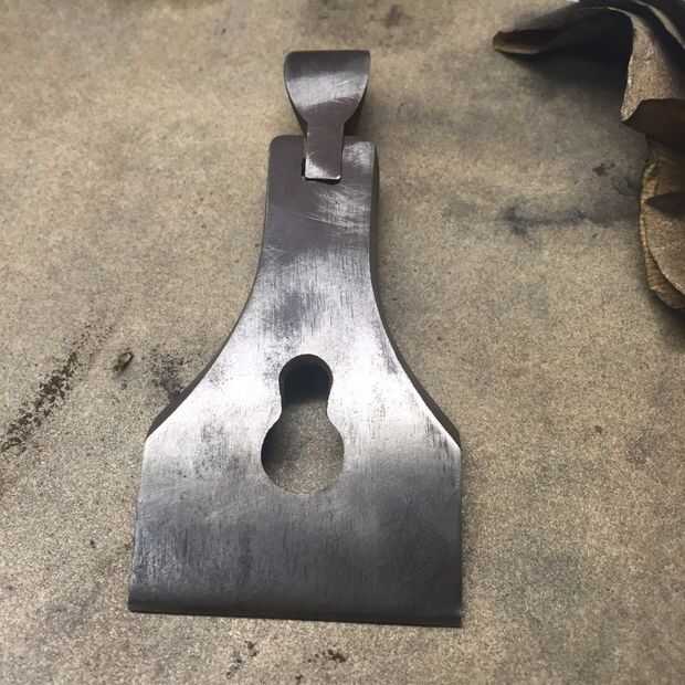 Mi rana es estampada de acero, mientras que la suela es de hierro fundido. Obviamente vivió en algunas condiciones húmedas en algún momento, la mayor parte del moho parece haber afectado el cuerpo más que la rana. No necesito hacer mucho a la rana. Si tuyo es fundido, probablemente obtendrá un mayor beneficio de aplanar y centrado encima de la rana.