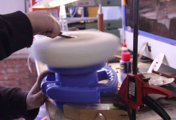 Entonces yo pulir los lados y la tapa de la palanca con compuesto de frotamiento en mi búfer automotriz, al revés y estabilizado con una abrazadera de tornillo de mano. Si usted hace esto, asegúrese de que la planta del pie de pulido para mantenerlo plano. Me resultaba difícil mantener las esquinas de mi tapa de palanca de captura en la tapa de amortiguación de espuma. Creo que mía se secó, por lo que su kilometraje puede variar.