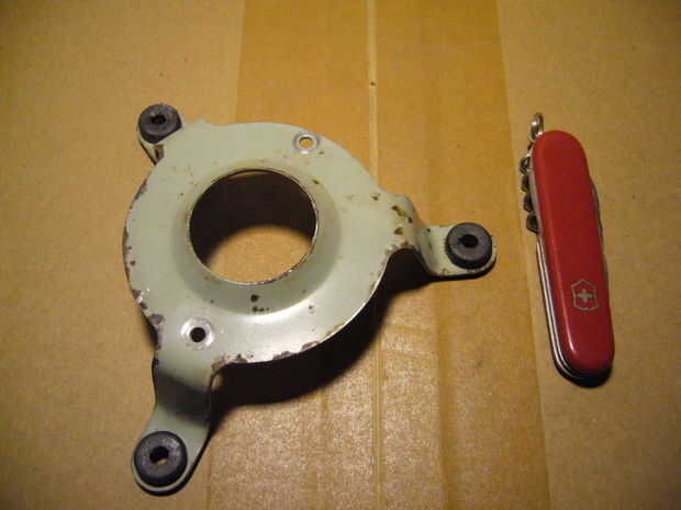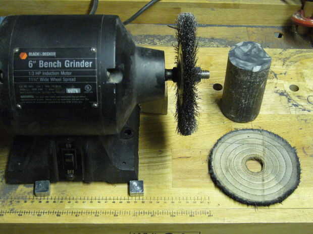 Esto estaba un poco más implicado, porque había moho. Me quité las arandelas de goma con la navaja. Entonces, tuve que usar la rueda del alambre en mi amoladora de banco para obtener toda la pintura de él. Entonces, rocía dos pesadas capas de pintura metálica para cubrir los hoyos pequeños. Todavía se veía bien.