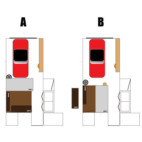 Terminé yendo con la opción "B" ya que había más espacio para trabajar en la parte delantera del coche.