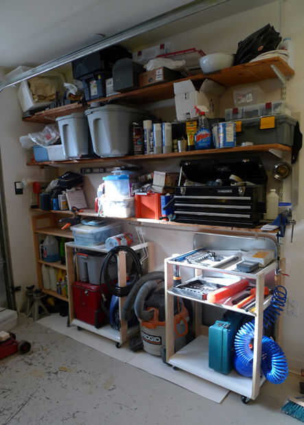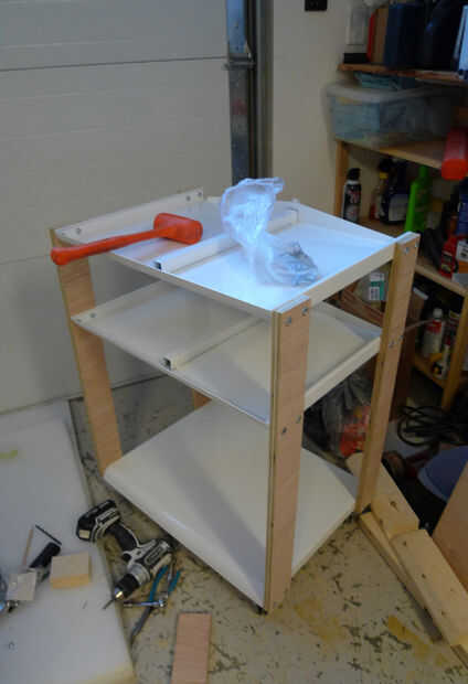 Foto 2: Con algunos pantalla vieja estantería unidades de trabajo, he construido algunos carros de la herramienta para el almacenamiento.