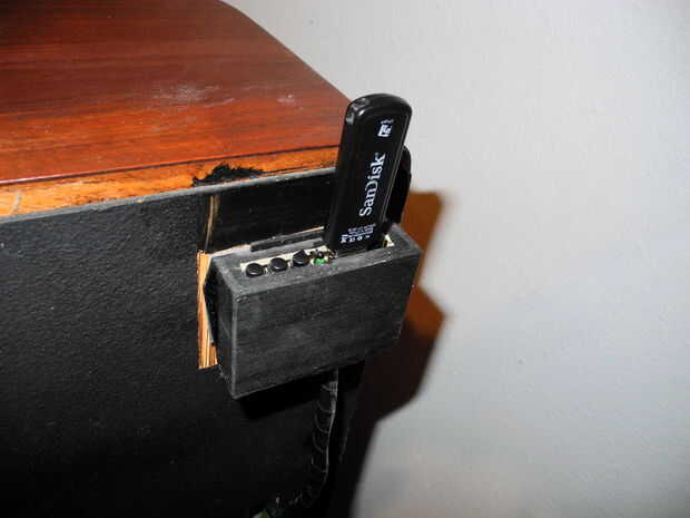 Éste no consigue muy caliente, así que hice una tapa con unos orificios de ventilación. Su hizo de 1/8 revestimiento de madera pintado de negro con pintura de imprimación, se trata de una pintura elástica que ayuda a reducir las vibraciones gabinete.