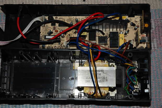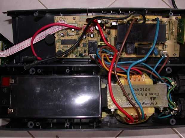 Luego (por supuesto con CA desenchufado para seguridad!!!!) Abrí la caja algunos tornillos y se extrae la batería original para comprobarlo. sin carga la tensión es correcta (un poco más de 12V) pero una vez conectado a la UPS y encendido el UPS la tensión bajó a acerca de 10V. luego al probar el circuito reemplacé la batería original (el más pequeño 12V 4.5AH) con un repuesto que ya tenía y que es más grande (12V 7.2AH) y el UPS funcionó a la perfección. con el recinto cerrado comprobado con AC conectado y la