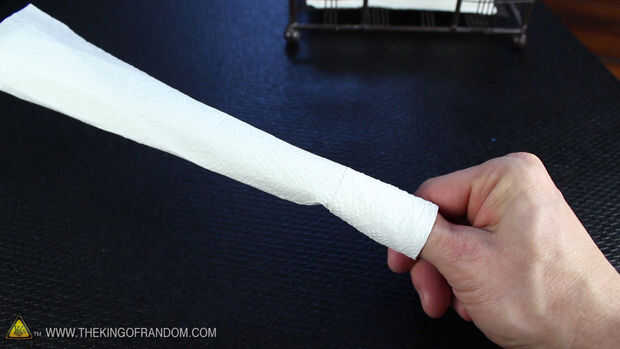 Ahora simplemente Dale la vuelta y coloca uno de los pulgares en la esquina detrás de la tira.