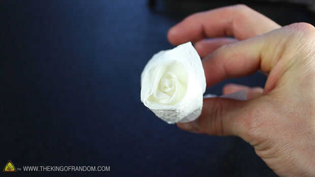 La aleta en la parte exterior se puede tirar suavemente para arriba alrededor de la cabeza se levantó para hacer una campana decorativa poco, y ya está listo!
