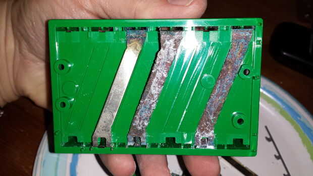 OK, antes de que nadie lo dice, tuvo más esfuerzo que probablemente debería tener. Estos ladrillos RCX son bastante comunes en eBay e ir bastante baratos, así que pude haber comprado otro en lugar de ir a todo este esfuerzo, pero que es no como hacer las cosas. Una vez que conseguí empecé apenas pude evitar yo y yo seguí experimentando con cosas diferentes para eliminar la corrosión y devolver estos contactos de la batería a lo que eran originalmente. Todos estos procesos son nuevas para mí, pero ya veo que van a ser útiles para otros proyectos por lo que veo esto como un ejercicio de aprendizaje, así. He considerado uso de electrólisis para eliminar el óxido en las herramientas, pero nunca llegó al punto cuando parecía necesario.