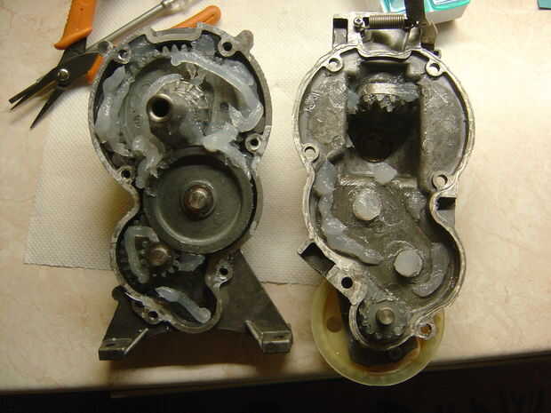 Quitar vieja limpia grasa de caja de cambios y reemplazado con nueva grasa seguro de alimentos.