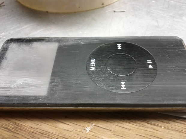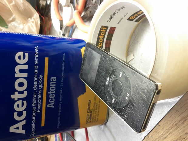 La idea aquí es utilizar acetona y el paño de microfibra para obtener el plástico en la parte frontal del ipod por lo menos lo suficiente para ver niebla pulido.