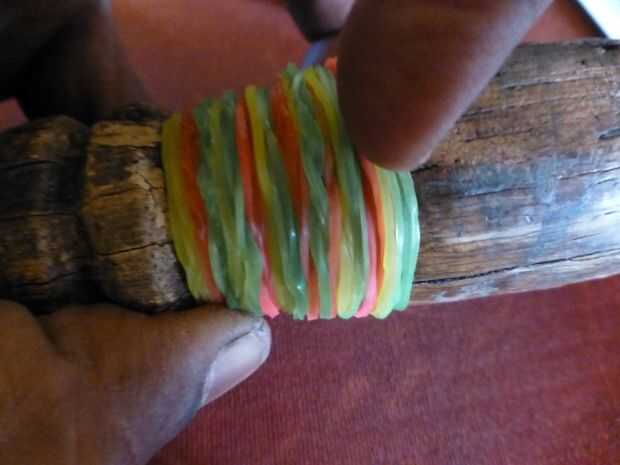 • Seguir añadiendo giros de gomas y compactarlos más cerca posible con los dedos. Puede utilizar colores alternos de bandas para hacerla más atractiva