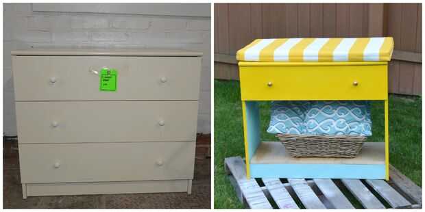 Cuando estoy buscando muebles en un presupuesto ajustado, hábitat para la restauración de la humanidad es un buen lugar para empezar. Miramos alrededor de la restauración en Filadelfia para encontrar un banco o alguna otra cosa que podría ser modificada para convertirse en un banco. No pasó mucho tiempo que vadear a través de las sillas, armarios, escritorios y más, para encontrar un aparador blanco pequeño con un precio de sólo $15. Puntuación.