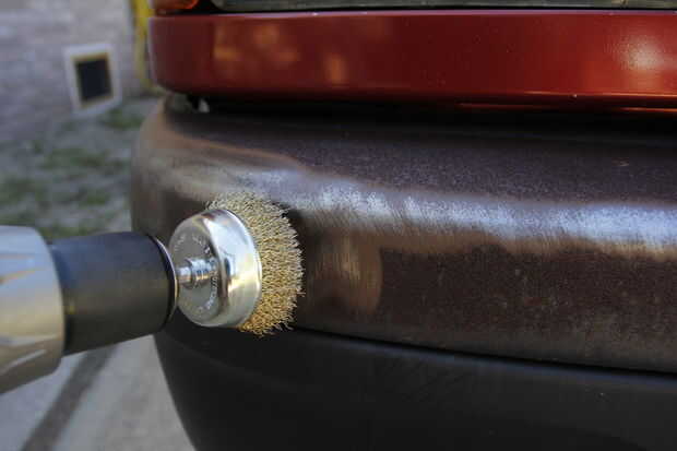 durante mi proyecto he decidido mejorar el enganche de parachoques poco encontré el año pasado. Y sólo se vería gracioso si no había rehecho el gancho de remolque, que estaba oxidado y cubierto en base de pintura.uprades se realiza con la ayuda de ww
