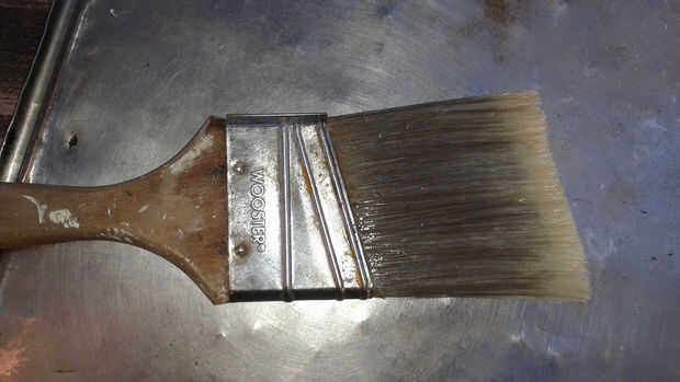 A continuación yo había saturado las cerdas con jabón de aceite de la Murphy. Lo hice suavemente para evitar que enjabonarse. Cuando las cerdas fueron empapadas con el jabón de aceite I había les había peinado otra vez y luego utiliza los dedos para formar cuidadosamente las cerdas. El jabón espeso actúa como gel para el cabello y tiene las cerdas en forma. También hidrata y condiciona el cepillo, lo que es suave otra vez. Me colgó el cepillo con las cerdas colgando hacia abajo y queda en el sol para secar durante unas horas. Si el cepillo está en muy mal estado, se puede dejar por varios días...