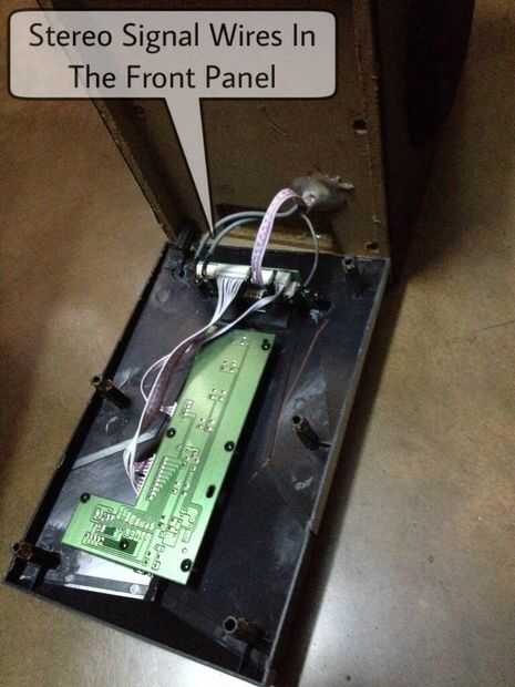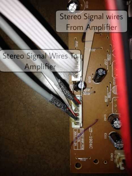 Así que en primer lugar tuve que localizar los cables estéreos que funcionarían a través de la señal de entrada en el panel frontal y luego desde el panel frontal al circuito amplificador. Es realmente fácil, porque en la mayoría de los casos este cable de señal es tubular de 3, es decir, un cable blanco para el canal izquierdo, un cable rojo para el canal derecho y un cable común que está realmente conectado a tierra y también protege el canal de cables dentro de la caja. Se puede ver en la imagen que hay 2 dichos cables de señal conectados a un único conjunto de encabezados de mujer. Significa 1 3 cables son para la salida al panel frontal y los 3 restantes son para insumos controlados desde el panel frontal. Simplemente tendrás que eludir estos pines de entrada y de salida utiliza conectores hembra que se elabora en pasos posteriores..!