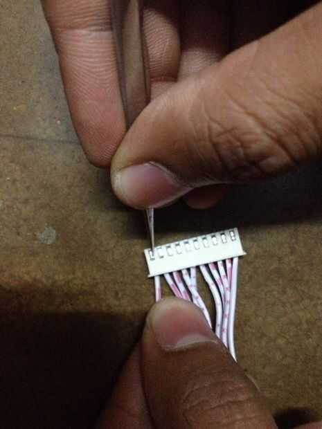 En primer lugar, retire el pasador de header hembra con cables conectados a él de los cables de la Rúbrica que salvar ahora. Use un clip o cualquier otro cablecillo rígido. Agujas de grasa pueden trabajar pero ten cuidado, después de todo son agujas!!!! Ahora presione el pasador del perno encabezado femenina usando la aguja y tire del encabezado como se muestra en la imagen. Ahora tira dos de esos cables, a ellos y aíslelo con cinta. Siga estas instrucciones para hacer idéntico a los dos cables más y pasar al siguiente paso!