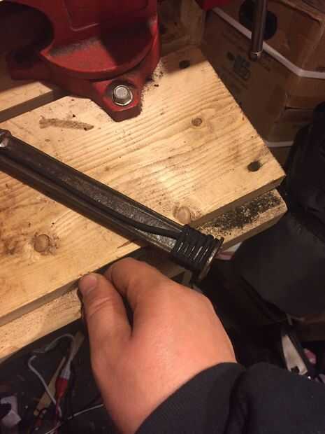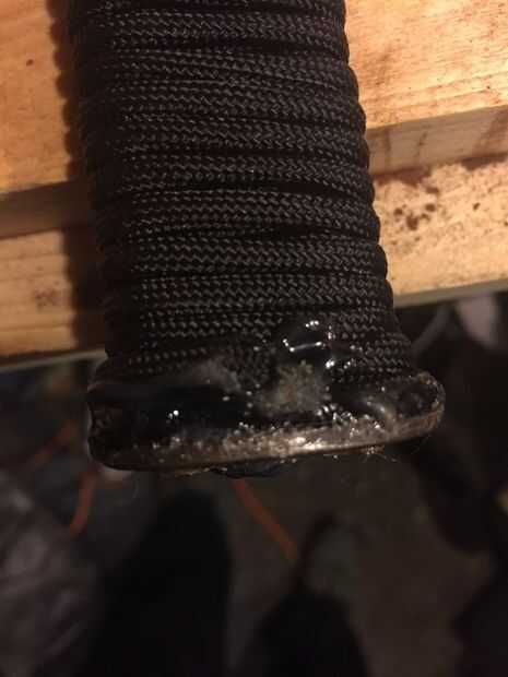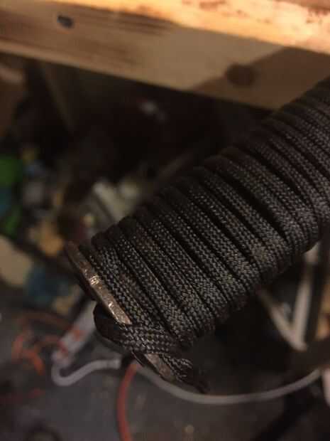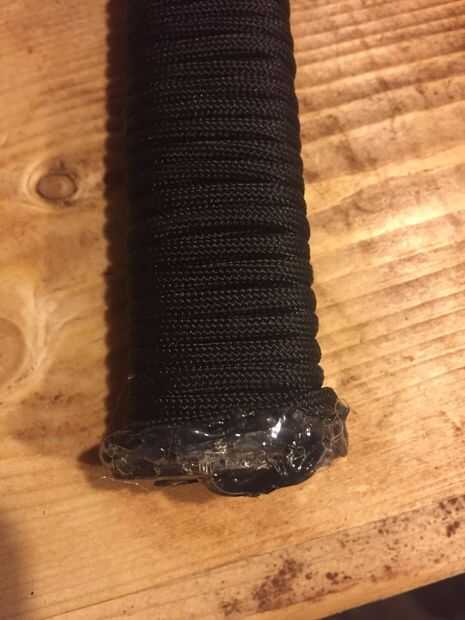 Literalmente. Utilicé para cable, negro. Hice dos capas, por lo que es un mango de buen tamaño. Ninguna cinta... Utilizo un poco de pegamento caliente para el final, después de envolver para mantener todo lo bueno. atar y asegurar con pegamento caliente.