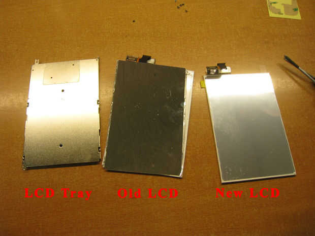 4) quitar el plástico posterior de la LCD nuevo y pegarse en la bandeja de LCD (tienes que hacerlo justo el primer paso!)