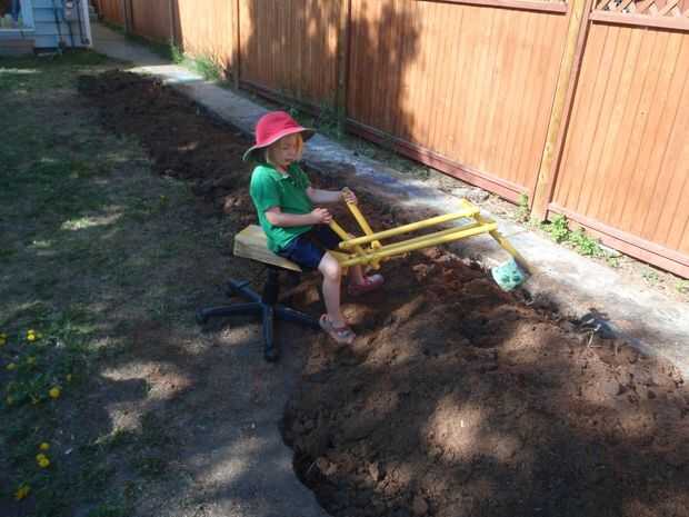 Conseguir a su hijo para mezclar all up with un buscador de fresco mientras que desenterrar el resto de la yarda.