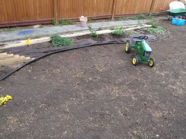 -cubierta con material de la cubierta de tierra (compré la tela, pero se puede utilizar cartón)
