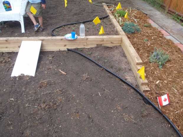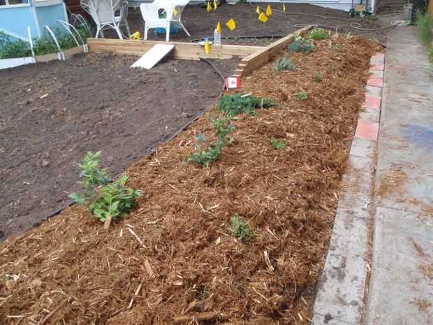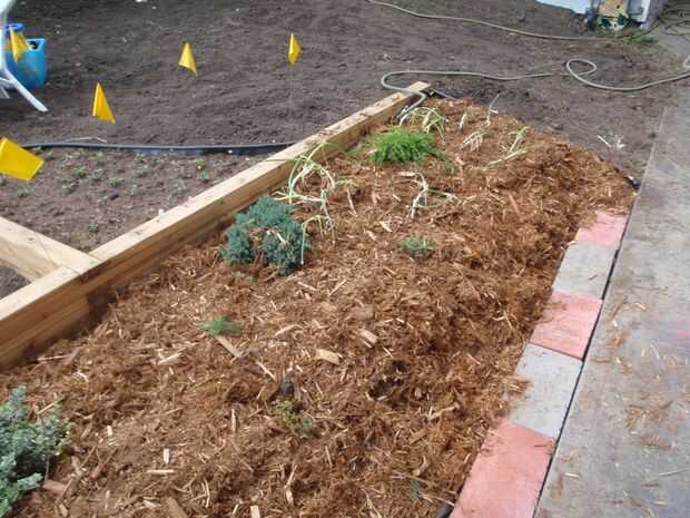 -capa con humus y material orgánico como sea posible. He utilizado un montón de ramas (sobre todo) y mantillo viejo. Hubo un superávit de agujas de los árboles, por lo usé para mi ventaja.