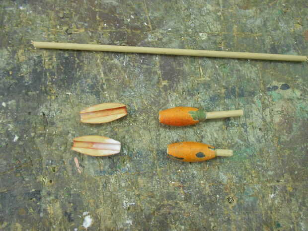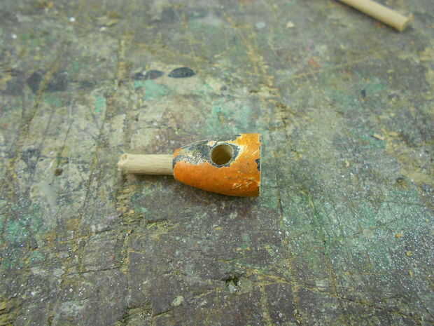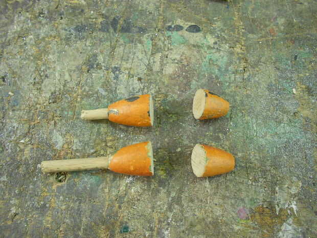 Las luces originales habían desaparecidas. Como reemplazo encontré algunas cuentas de madera en el tamaño perfecto y la forma. Perforé el existir agujeros de hasta 5mm para pegar en la adecuación de tacos (no forzarlo o se dividirán las cuentas). Luego cortar a la medida y perforaron un agujero de 5mm en el lado de cada luz. Después de arena fuera la pintura vieja, corta la espiga sobrante y había redondeado el borde posterior de la luz. Luego había pegado en los tacos en los laterales y había preparado las luces para la pintura. En el lado del tractor redrilled los orificios existentes a 5mm de diámetro