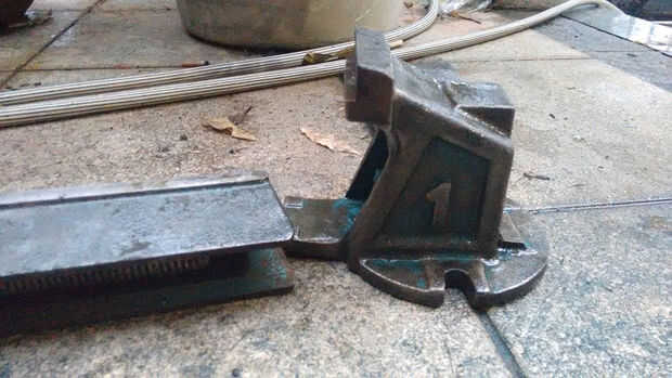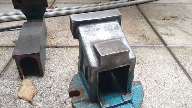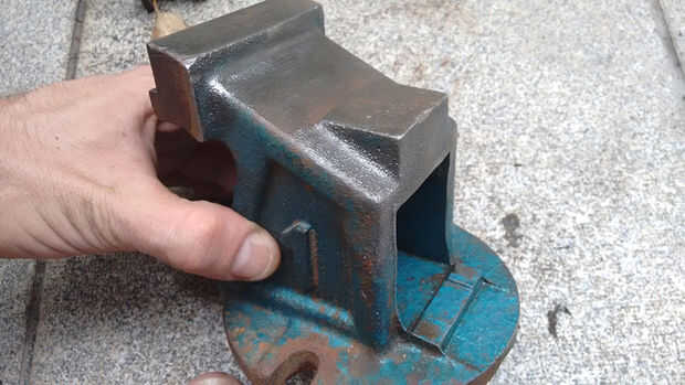 poner unas gotas de aceite en el tornillo de banco y entonces comienzo a frotar primero con la lana de acero gruesa, que papel de lija, lana de limado y ahora probablemente deshacerse de la roya y la vieja pintura hasta se puede ver una buena superficie para la nueva pintura.