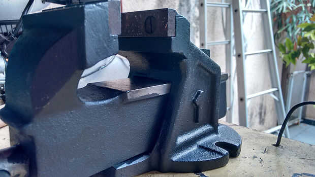 Tengo un tornillo de banco 5 pulgadas con mordazas dentadas muy agresivas (la parte que se sujeta sobre su objeto). Estas mordazas trabajan mucho para el acero, pero en otros materiales generalmente salen guiones permanentes (aka estropear) en la sup