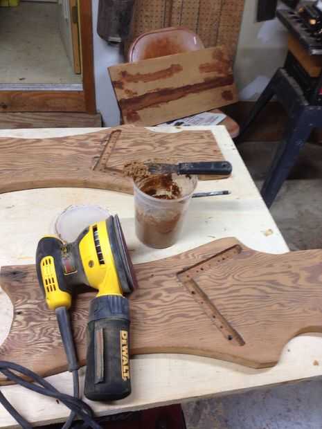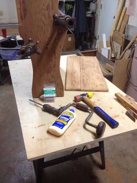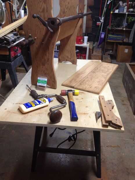 Como ya mencionado, esta pieza fue lleno de la vieja desagradable cabeza plana tornillos y clavos, dejándome con una pista en cuanto a tener reparaciones y como intentaron en él en el pasado. La parte superior había agrietado totalmente aparte y los pies estaban en peores condiciones. Después de rellenar las grietas y desmontaje noté que el fabricante original tomó el tiempo de receso de la estantería en los pedazos de extremo vertical. Alguien también había avellanado de los tornillos de la estantería en los extremos. Quería un look más clásico, así que decidí usar tacos en lugar de clavos o tornillos. Además, una añada esviados plantilla propiedad de mi abuelo fue utilizada para arreglar la grieta sobre la pieza superior.