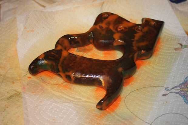 Utiliza un removedor de pintura en el mango.  Tomé una clase genérica de la tienda de la caja local y funcionó increíble. Utilicé papel de arena de grano fino para limpiar el resto.