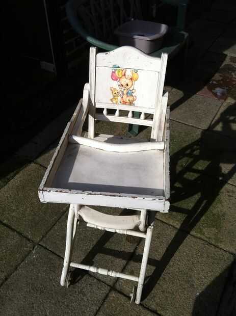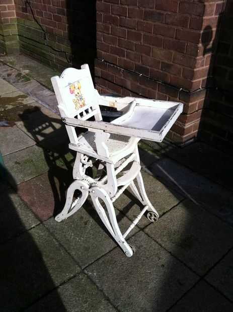 Una vez que la pintura se había ido que me aseguré que era agradable y suave al tacto con un papel de lija fino. Necesitaba hacer una bandeja replacent usé una vieja tabla de cortar para. Sólo corte se forma con una sierra de calar y había añadido una base de madera contrachapada. Hice un nuevo asiento de madera contrachapada y perforado en el patrón de la estrella original. Usé algunos cuero real para crear un cojín de asiento y resto trasero. Para el acabado de la madera he utilizado algunos aceite de linaza crudo ya que es un final de comida segura y realmente resaltará la belleza de la madera.