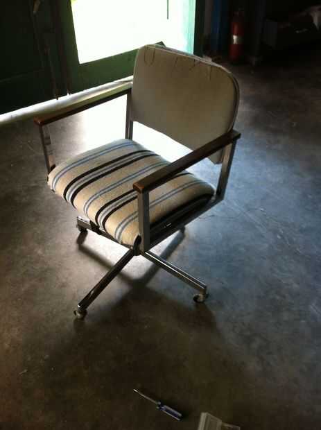Una vez que todos los extremos han sido engrapados en y recortado, el resto de lo que sólo es atornillar la base espalda sobre la silla y probarlo! Puesto que se llevaba la espuma interior hacia fuera en un extremo, opté por volver a montar la base hacia atrás para que la espuma desgastada ante el respaldo de la silla. A prueba de la silla, he encontrado mi obra totalmente satisfactorio y muy cómodo! Mucha suerte en la restauración de su propio esfuerzo y me gustaria escuchar sus esfuerzos/comentarios/preguntas. :)